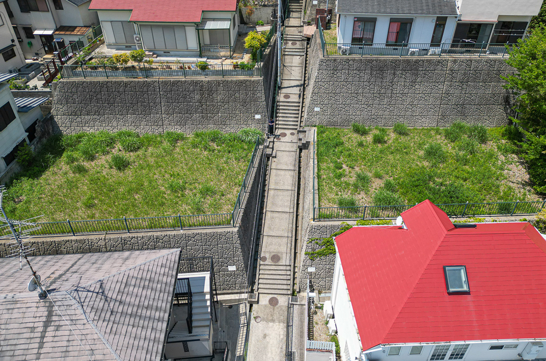 建築前の土地の空撮を行うことで建築後の眺望や隣地との距離感などが