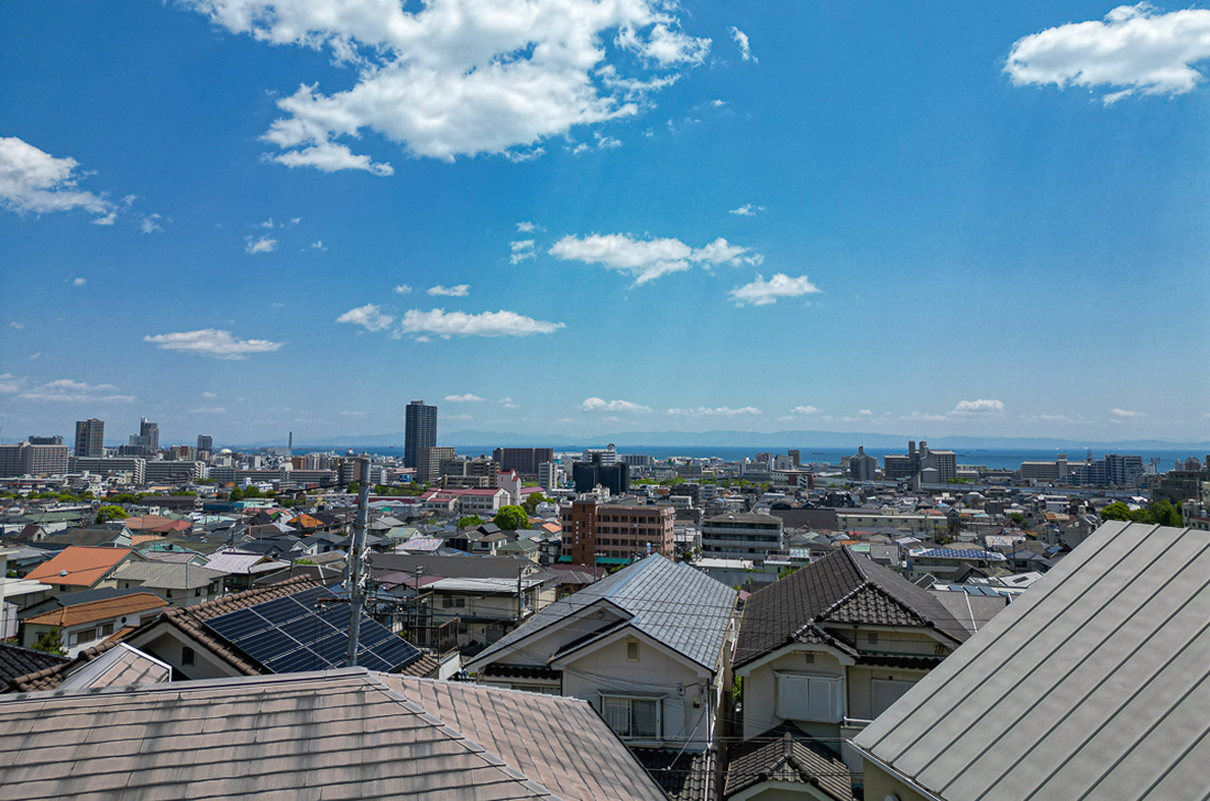 バルコニーや2階や3階、更にルーフバルコニーなど実際の高さからドローン空撮する事で、実際の建築後にはどのような眺望が得られるのか、事前に確認することができます。
