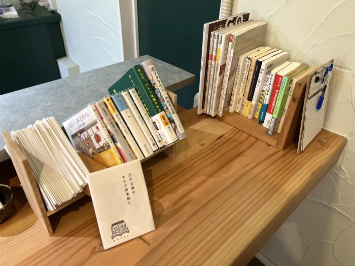 王子公園周辺には本屋さんがなく、本を手に取る機会が少なくなるので各お店に置いて図書館にしよう!という発案が最初だったそうです。