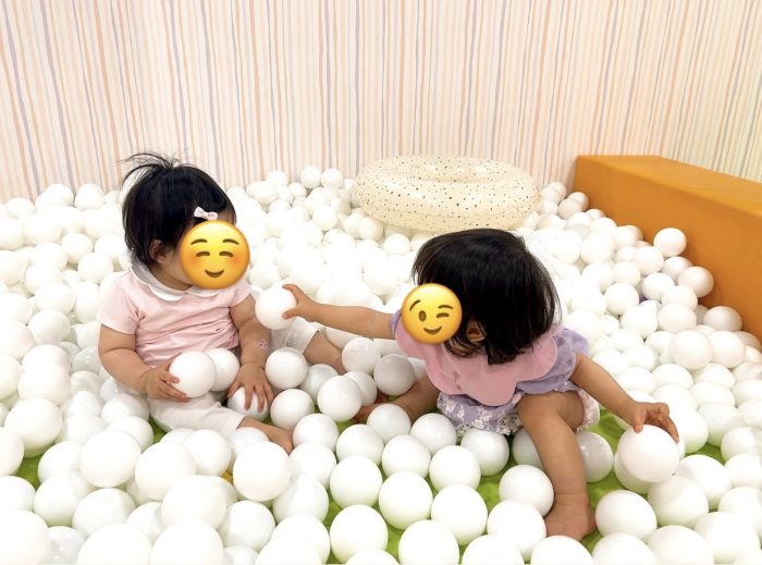 「大きなボールプールはまだ不安…」という場合も、ベビーパークには小さめのボールプールがあり安心。「どうぞ」とボールを渡すなど、自然と遊びの中でコミュニケーションの練習にもなります。