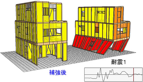 ※耐震1と補強後との比較動画より