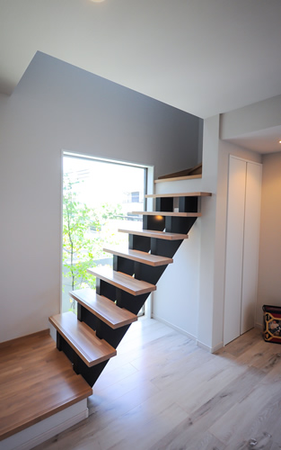 希望通り、黒を基調とした重厚感のある外観ですごく気に入っています。外構部分、例えば入り口から玄関までの造りにもこだわりました。私たちが伝えた要望のなかに、吹き抜けを設けることや、スケルトン階段にしたいこと、そしてウッドデッキを設けること、そのすべてが叶ったことで、とても満足しています。
