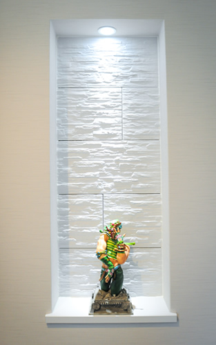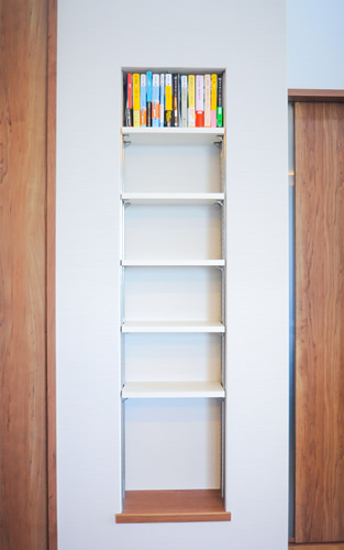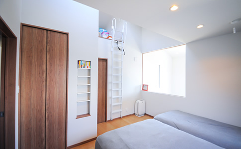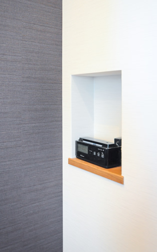 過ごしやすい家であることはもちろん、内装部分における細やかな部分にもこだわって施工していただきました。例えば内壁に随所に設けられた、玄関やリビングにオブジェを飾る部分がそうですね。また、寝室に設けた文庫本を置く小さな壁側のスペースも、すべて私たちの要望に沿って実現していただきました。さらに、照明のひとつひとつにいたるまで、緻密な家づくりは注文住宅ならではの素晴らしさだと思います。
