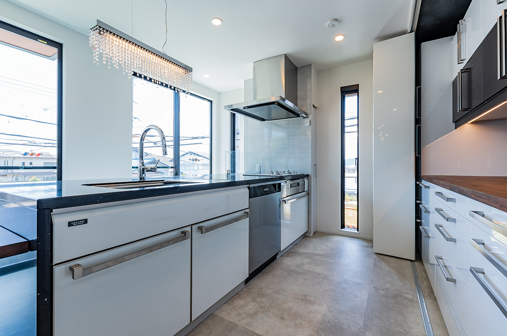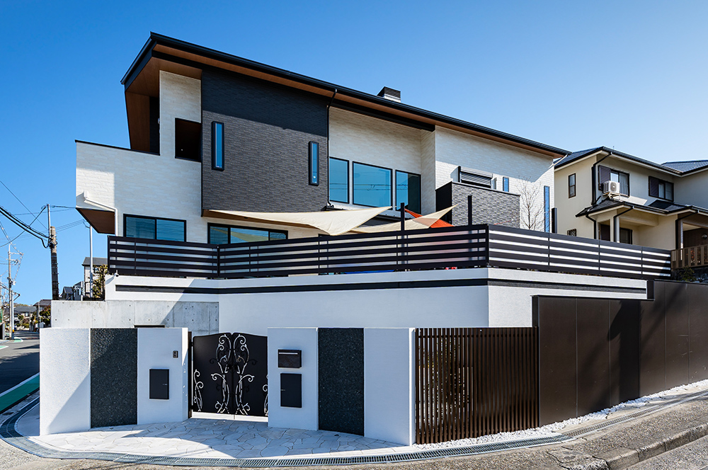 北摂の人気エリア、豊中市緑丘の一画。一際凛とした佇まいが、優れた洗練さを思わせる一邸。曲と線の調和が格調高い雰囲気の門扉を抜け、その先の玄関に入った瞬間から、照明の配置、色彩、デザイン、実用性のすべてが詰まったワンランク上の暮らしを印象付ける様相を呈します。リビングに入るとさらに広がる上質空間が家人をゆったりと包み込みます。地形を生かした間取りレイアウトにより高い採光性を実現。明るく演出されたLDK空間の解放感をより一層高めています。暖炉や吹抜けはもちろん、デスクコーナーやテレビボードに至るまで、快適性とデザイン性を追求したこだわりの設えになっています。各居室や水廻りなども、それぞれが実用性の中に遊び心が映える充実の仕上がり。北摂屈指の人気エリアにふさわしい、気品あふれる一邸です。